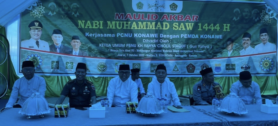 Unaaha, Anoapress.com- Pengurus Cabang Nahdlatul Ulama (PCNU) Konawe bersama Pemda Konawe menggelar peringatan Maulid Akbar Nabi Muhammad SAW 1444 H di lapangan Konggoasa, Kecamatan Amonggedo Kabupaten Konawe, Jumat (7/10).