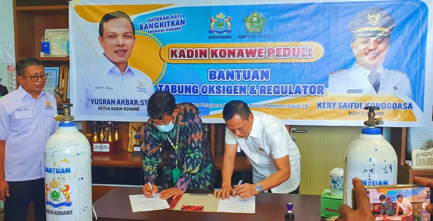 Sebelumnya Direktur BLUD Konawe, dr Agus Lahida, memberikan apresiasi terhadap langkah Kadin Konawe yang memberikan bantuan tabung oksigen dan Regulator.