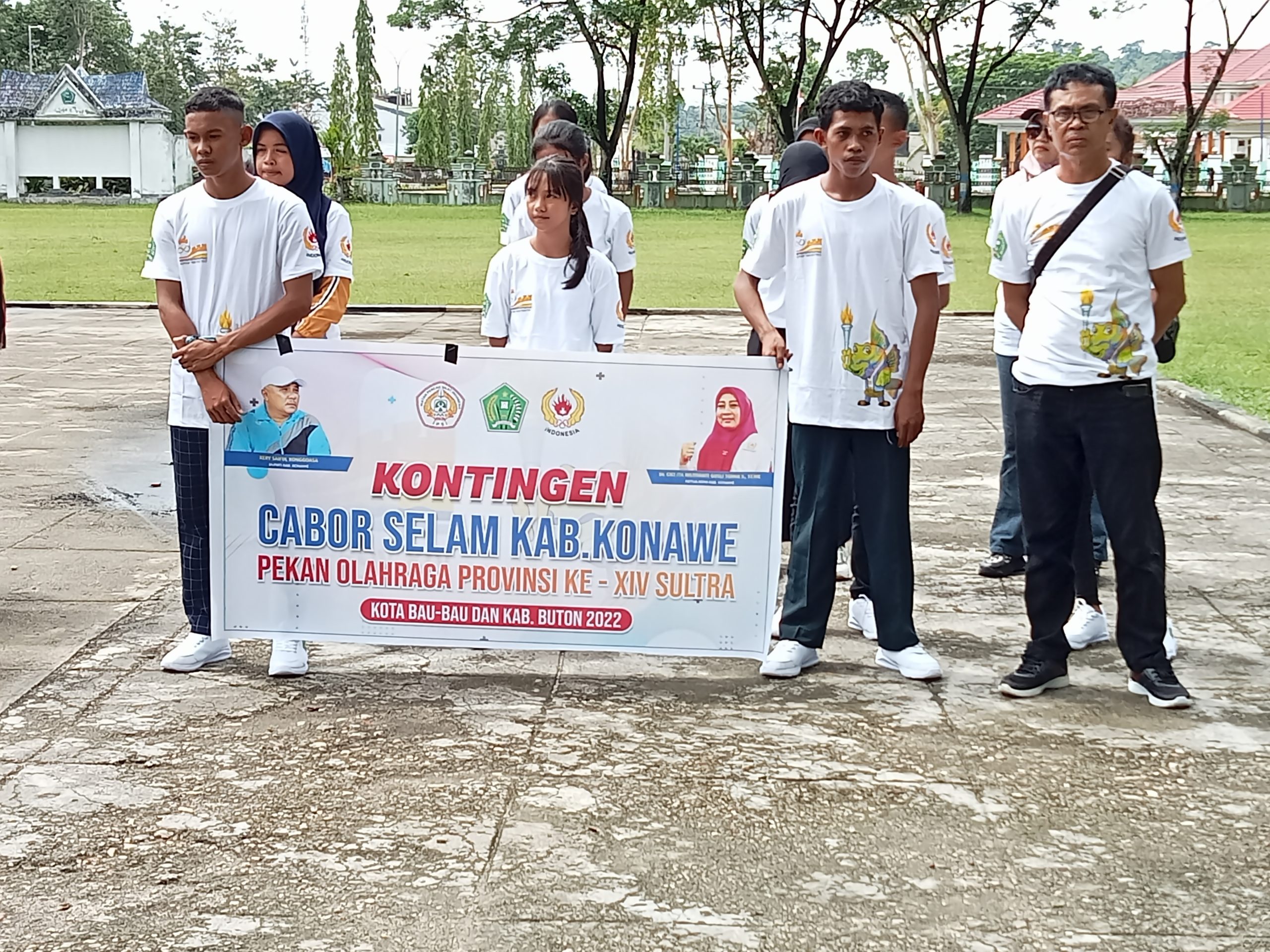 Unaaha,Anoapress.com- Pemerintah Kabupaten Konawe melepas Kontingen atlet yang akan berlaga di Pekan Olahraga Provinsi (Poprov) Sulawesi Tenggara XIV, dari tanggal 26 November sampai 3 Desember 2022 di Kabupaten Buton dan Kota Bau-Bau.