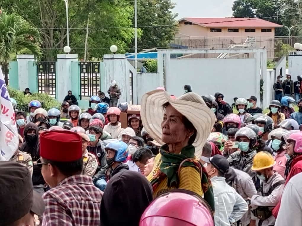 Unaaha, Anoapress.com- Ratusan massa yang tergabung dalam Serikat Pekerja Serikat Buruh (SPSK) dan Kesatuan Serikat Pekerja Nasional (KSPN) yang bekerja di PT VDNI dan PT OSS Kabupaten Konawe, Provinsi Sulawesi Tenggara (Sultra) berunjuk rasa dikantor Dewan Perwakilan Rakyat Daerah (DPRD) Konawe, Rabu, (18/1/2023).