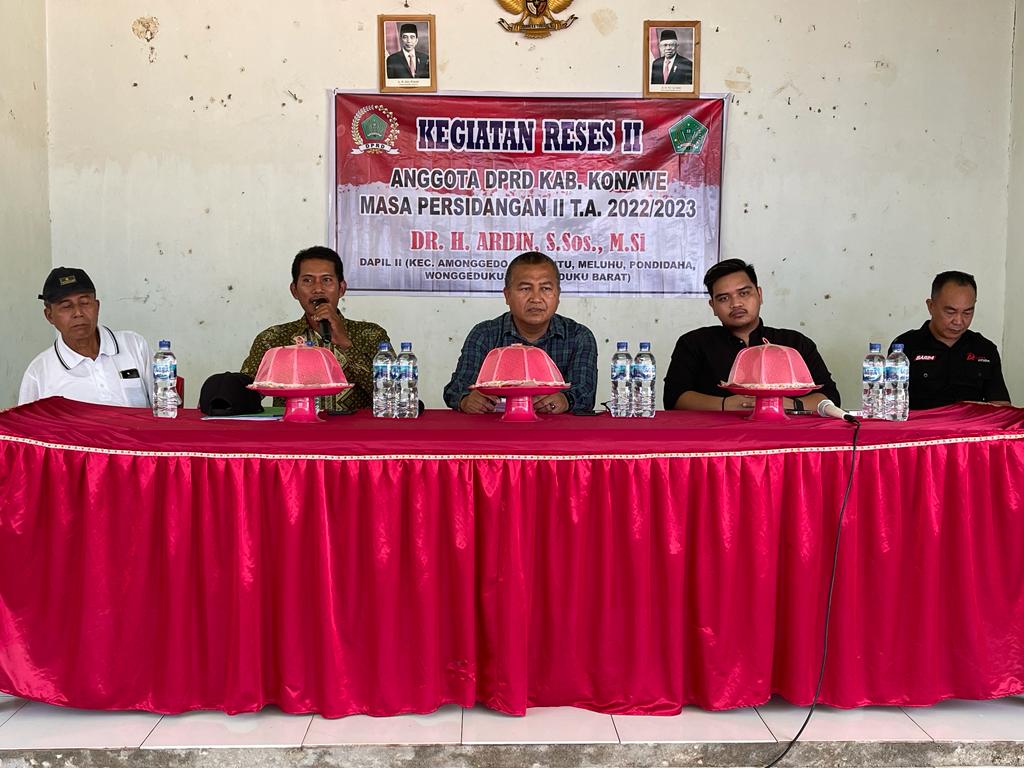 Unaaha, Anoapress.com- Ketua Dewan Perwakilan Rakyat Daerah (DPRD) Konawe, Dr H Ardin. S.sos. M.Si, melakukan reses dalam masa sidang II Tahun 2022/2023 di desa Wowohine, Kecamatan Amonggedo Kabupaten Konawe, Selasa 13 Februari 2023.