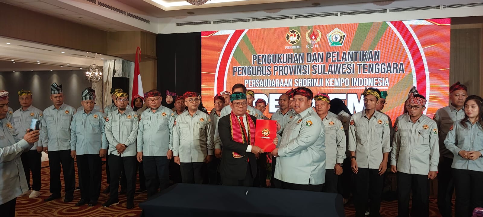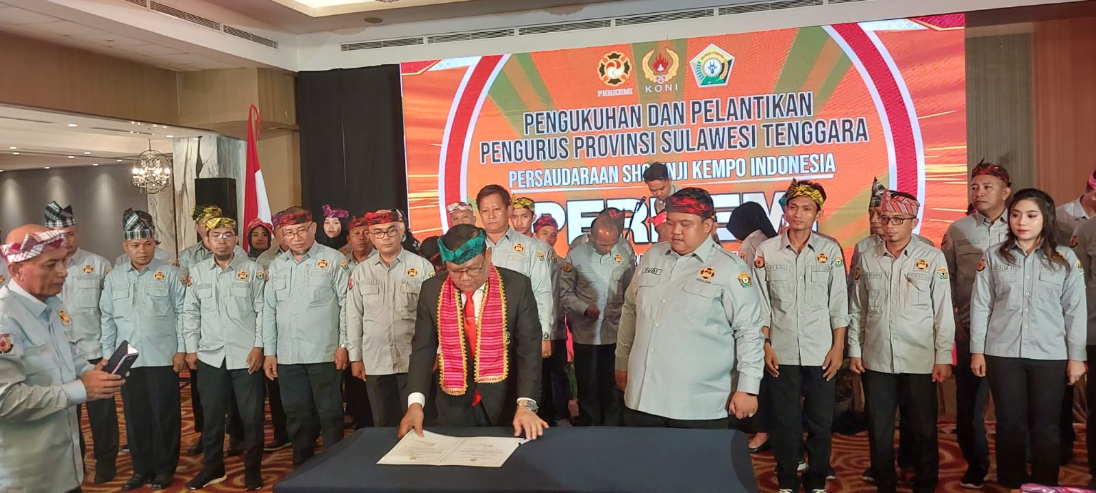 Kendari, Anoapress.com – Ketua Umum Pengurus Besar (PB) Persaudaraan Shorinji Kempo Indonesia (Perkemi), Agus Setiadji resmi melantik ketua dan 41 pengurus Perkemi Sulawesi Tenggara (Sultra) masa bakti tahun 2023-2027.