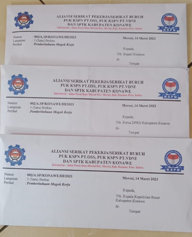 Ia pun menegaskan bahwa gerakan mogok kerja tersebut murni untuk kepentingan buruh dan karyawan di Morosi, jika kemudian ada gerakan atau aksi tandingan itu adalah karyawan yang memiliki posisi strategis di perusahaan asal Tiongkok tersebut.
