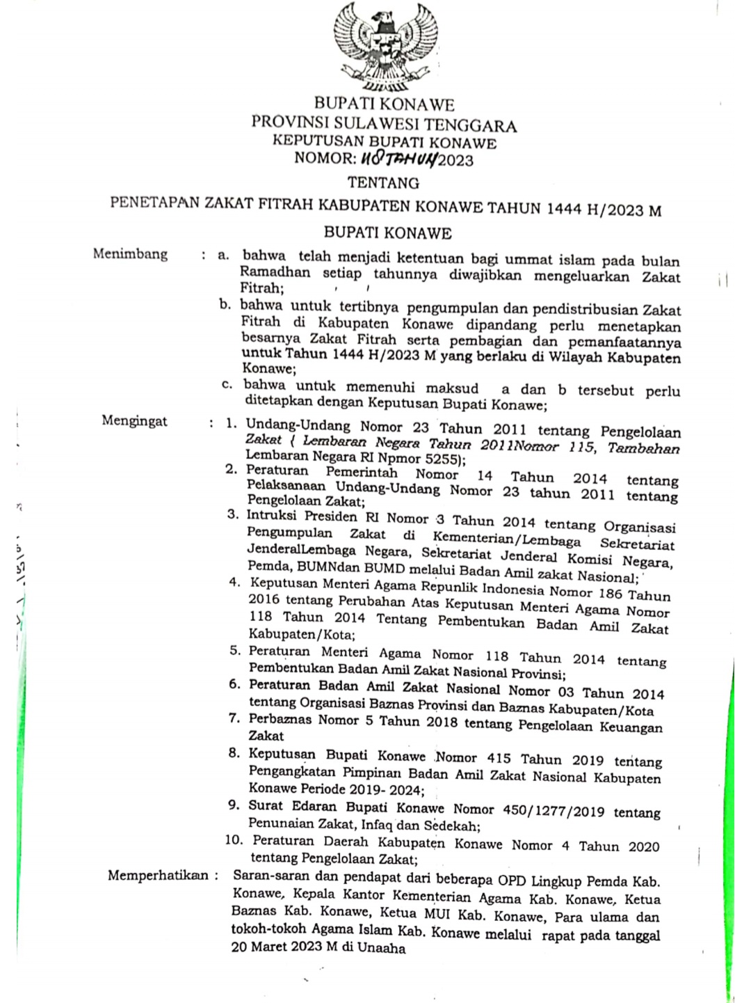 Hal itu berdasarkan Surat Keputusan Bupati Nomor 118 Tahun 2023 Tentang Penetapan Zakat Fitrah Kabupaten Konawe Tahun 1444 H/2023 M.