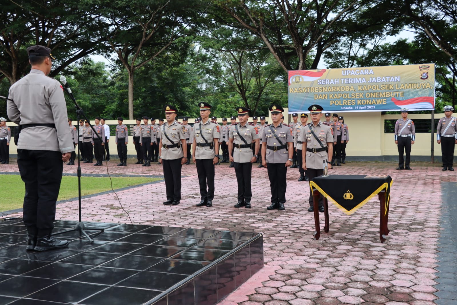 Unaaha, Anoapress.com-Kepala Satuan (Kasat) Reserse Narkoba Polres Konawe, Kapolsek Lambuya dan Kapolsek Onembute resmi berganti. Pergantian tersebut ditandai dengan serah terima jabatan (Sertijab) yang dipimpin langsung Kapolres Konawe, AKBP Ahmad Setiadi, SIK di Aula Polres Konawe Jumat (14/4/2023) pagi.