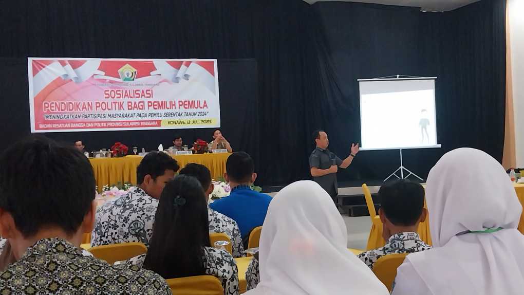Hal itu disampaikan usai kegiatan sosialisasi Pemilu terhadap Pemilih Pemula yang digelar oleh Kesbangpol Provinsi SulawesiTenggara, dihotel Nugraha Kamis 13 juli 2023.