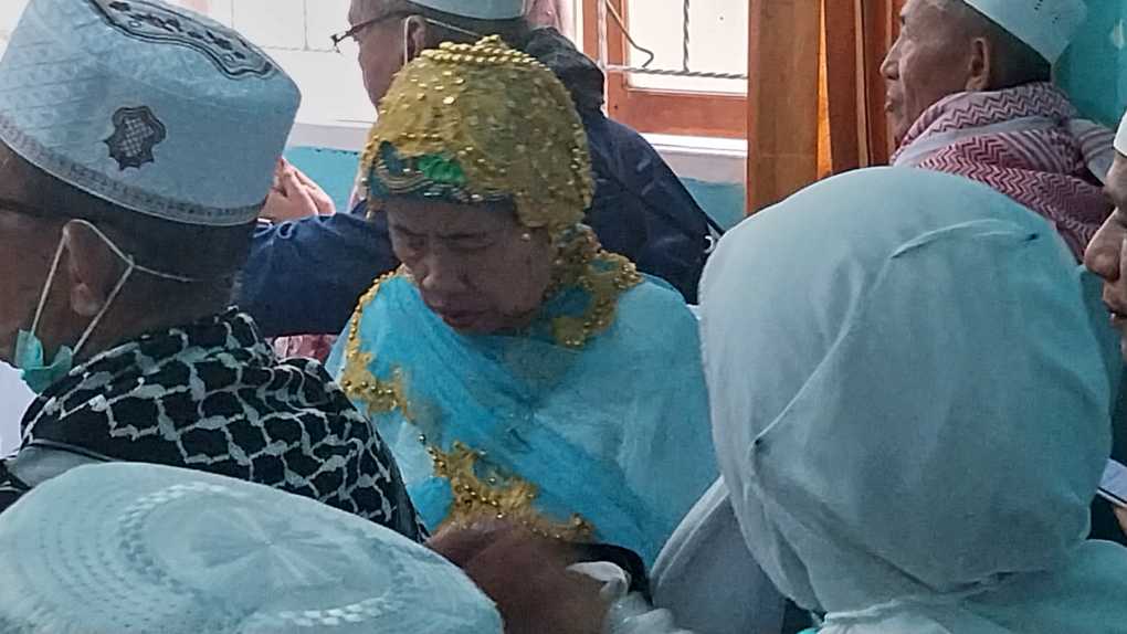 Rombongan jamaah haji, yang berjumlah 134 disambut dengan haru oleh para keluarga jamaah haji yang sejak pagi menunggu kedatangan rombongan dari bandara Haluoleo.