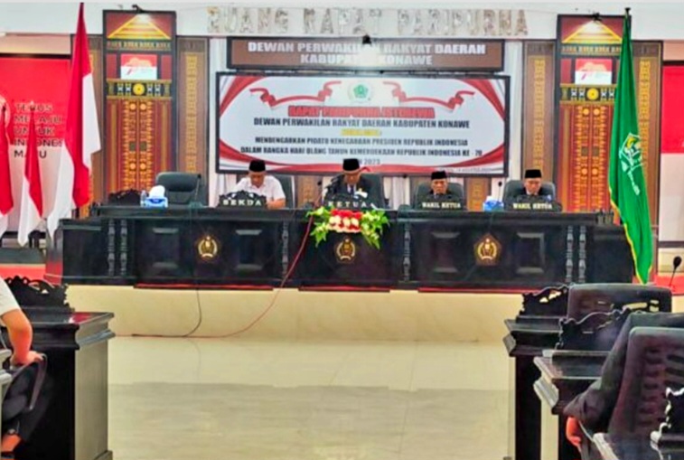 Unaaha,Koransultra.com- Dewan Perwakilan Rakyat Daerah (DRPD) Kabupaten Konawe menggelar rapat paripurna dalam rangka HUT RI yang Ke-78 dengan agenda mendengarkan Pidato Kenegaraan Presiden Republik Indonesia.