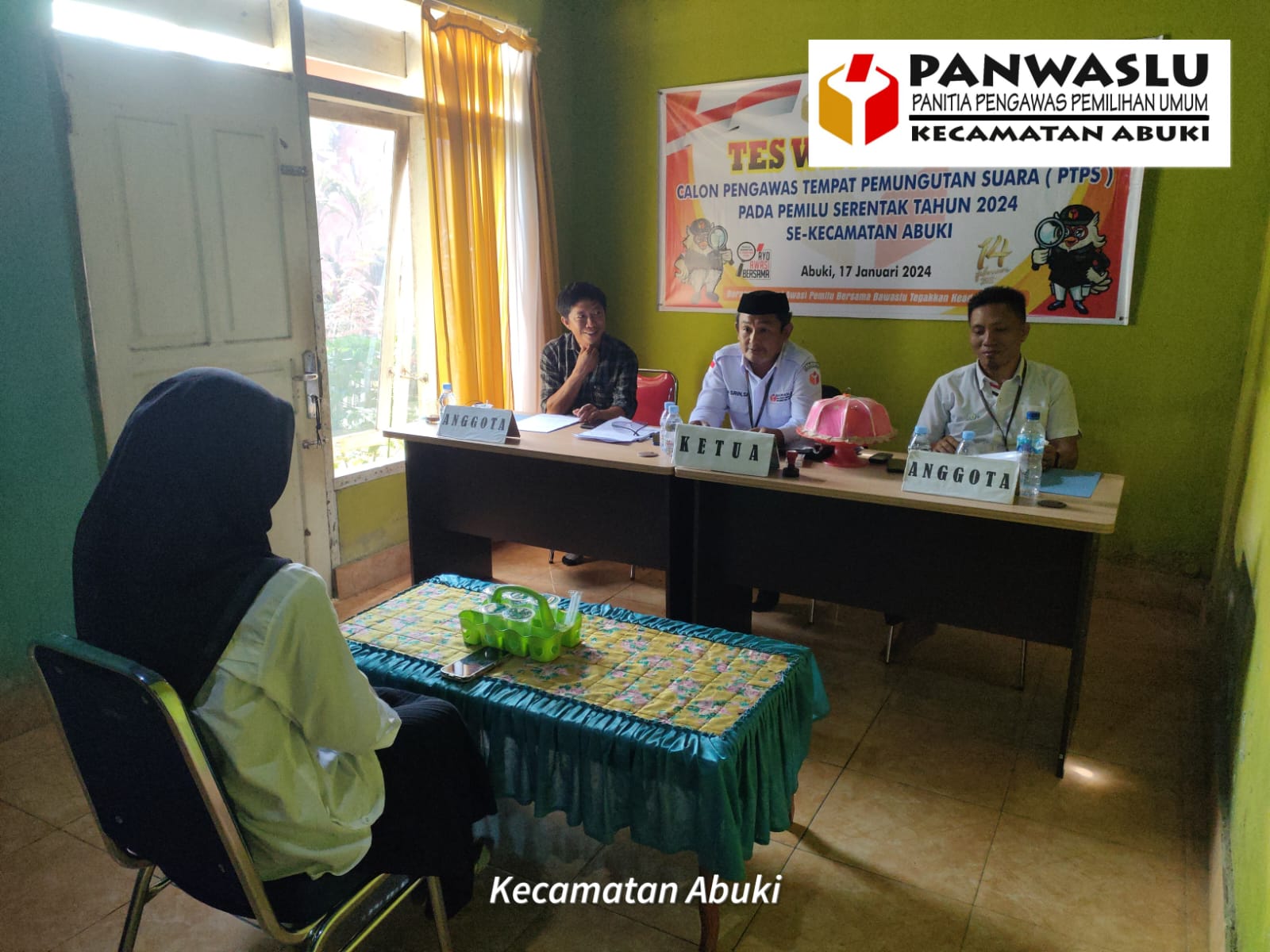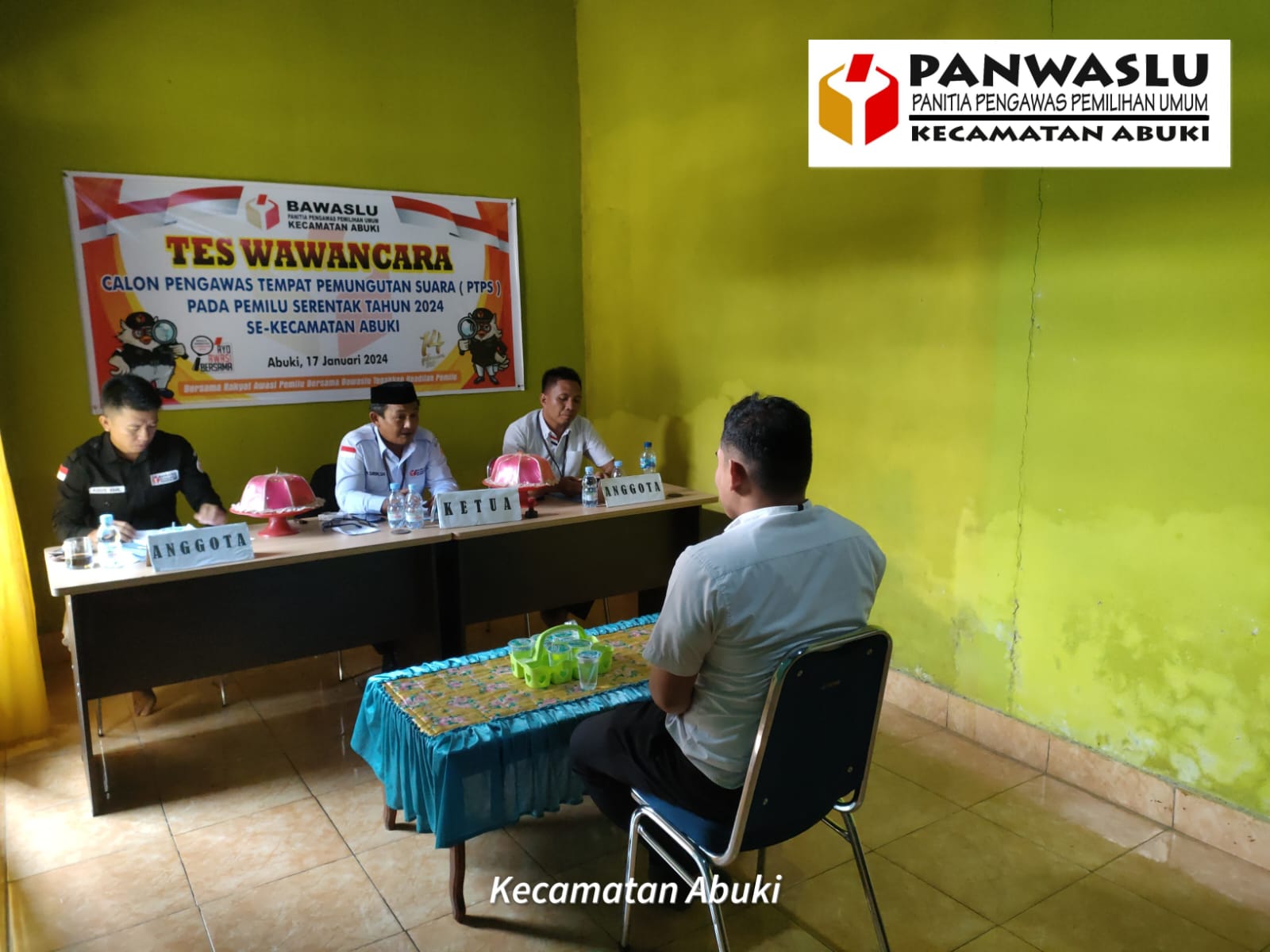 Ketua Panwaslu Kecamatan Abuki, Hasrin, SH mengatakan sebelum proses tes wawancara dilaksanakan, pihaknya terlebih dahulu telah melakukan proses seleksi administrasi pada tanggal 6 januari 2024 lalu.