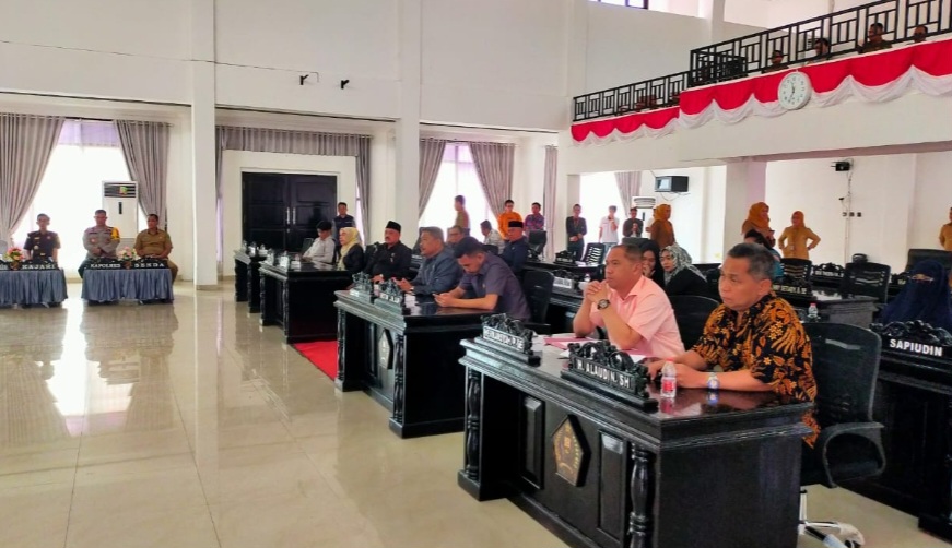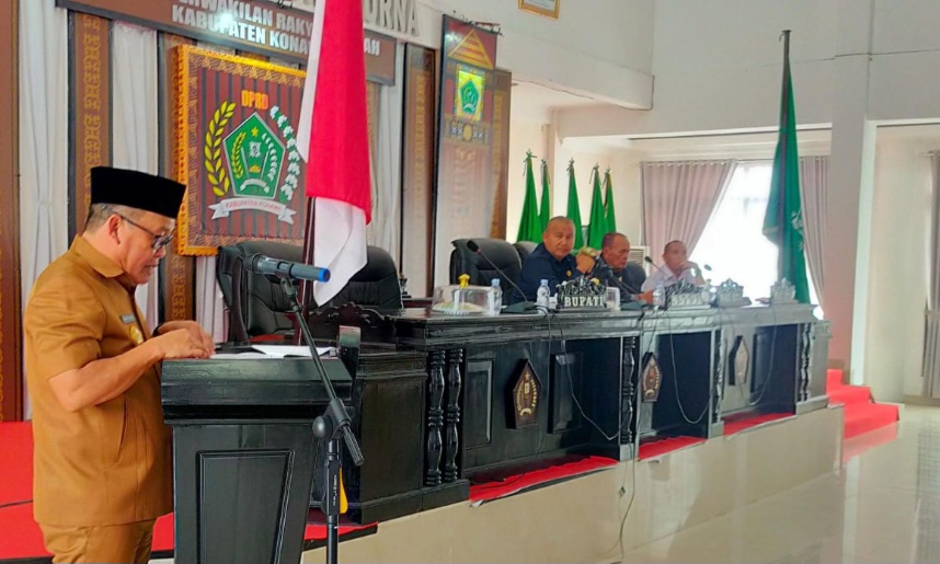 Unaaha Anoapress.com- Perwakilan Rakyat Daerah atau DPRD Kabupaten Konawe menggelar Rapat Paripurna Penerimaan dua rancangan peraturan daerah (Ranperda) dari Pj Bupati Konawe, Dr Harmin Ramba, Senin (26/2/2024).