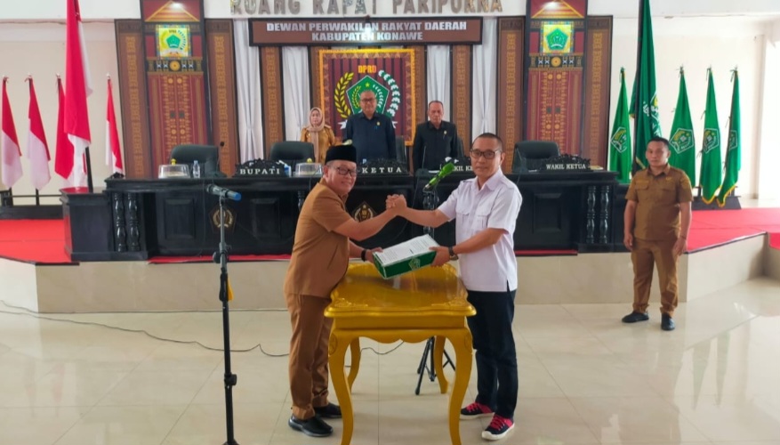 Dalam kesempatan itu DPRD Konawe menerima Raperda tentang Perubahan Kedua atas Peraturan Nomor 6 Tahun 2016 tentang Pembentukan dan susunan perangkat daerah Kabupaten Konawe.