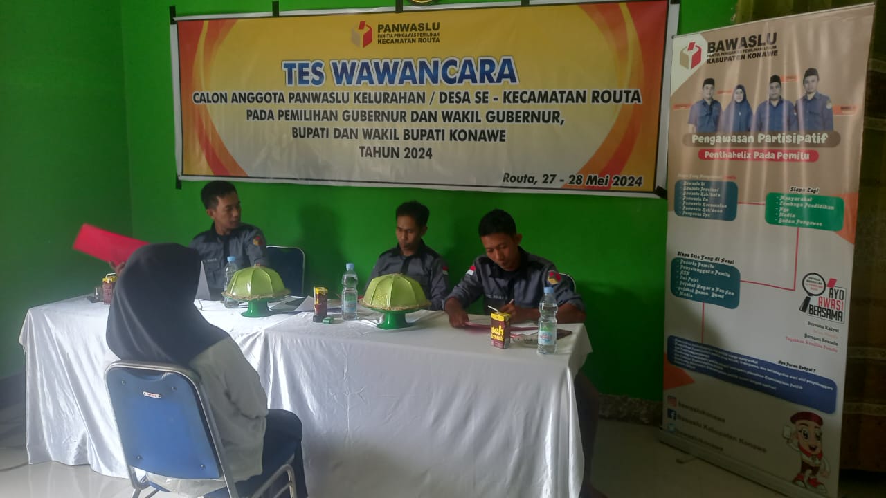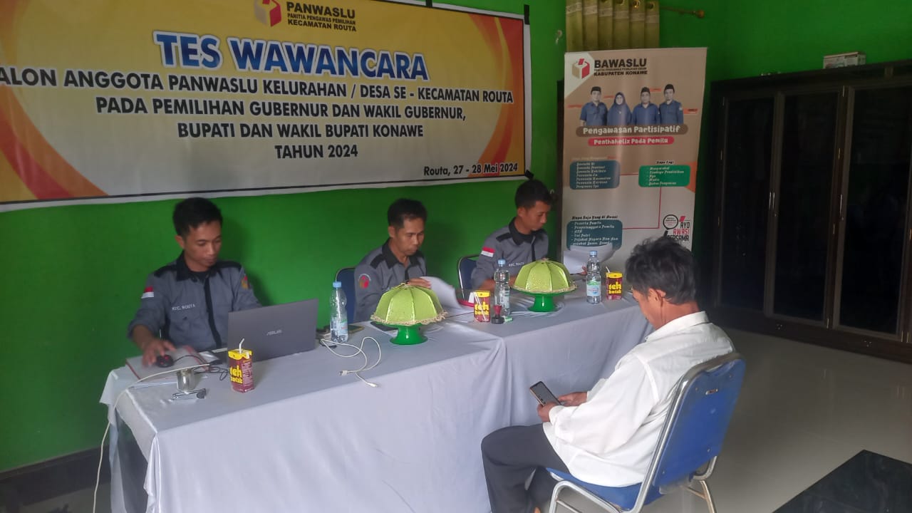 Unaaha,Anoapress.com– Panitia Pengawas Pemilu Kecamatan (Panwascam) Routa melaksanakan tes wawancara untuk calon Pengawas Kelurahan dan Desa (PKD), pada Selasa (28/05/2024).