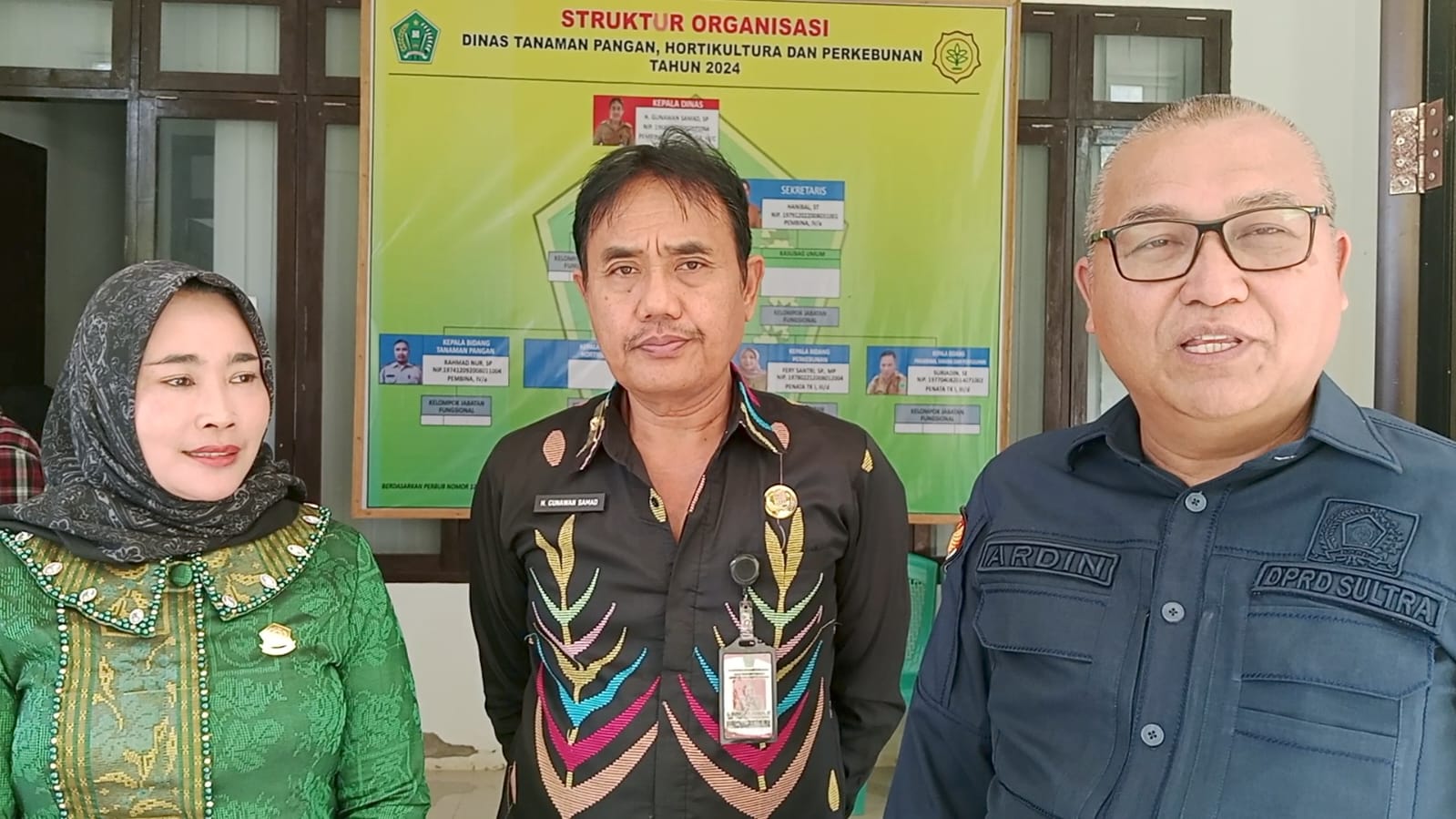 Kunjungan kerja anggota komisi II DPRD Sulawesi Tenggara, Dr. Ardin (PAN), Hj. Ponirah (PBB) dan Amsar (Golkar) di kabupaten Konawe diterima langsung oleh kepala dinas TPHP Kabupaten Konawe, H. Gunawan Samad serta sejumlah kepala bidang lingkup dinas TPHP Kabupaten Konawe.