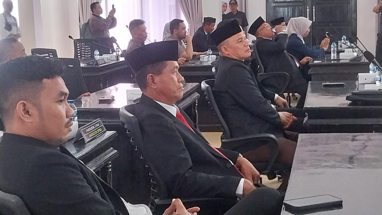 Rapat Paripurna tersebut dipimpin oleh Ketua DPRD Konawe Made Asmaya dan dihadiri Sekretaris Daerah Kabupaten Konawe Ferdinad Sapaan, dan Forkopimda Kab Konawe.