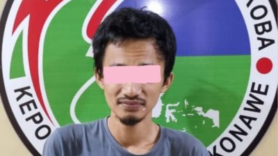 Setelah melakukan penggeledahan di rumah Tersangka Joko Wibowo, petugas menemukan 1 buah tas warna biru navi…